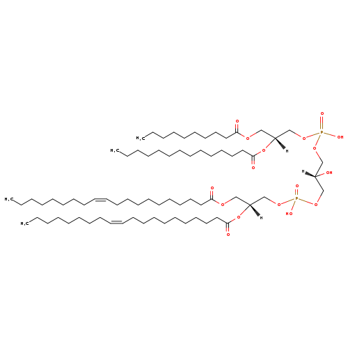 | YMDB11828 | 2-MLCL(10:0/14:0/20:1(11Z)/0:0) | [(2R)-3-(decanoyloxy)-2-(tetradecanoyloxy)propoxy][(2R)-2-hydroxy-3-({hydroxy[(2R)-2-hydroxy-3-[(11Z)-icos-11-enoyloxy]propoxy]phosphoryl}oxy)propoxy]phosphinic acid | C53H102O16P2 1057.331 | |
