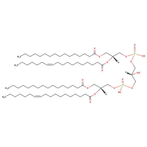 | YMDB11929 | 2-MLCL(16:0/16:0/16:0/0:0) | [(2R)-2,3-bis(hexadecanoyloxy)propoxy][(2R)-3-({[(2R)-3-(hexadecanoyloxy)-2-hydroxypropoxy](hydroxy)phosphoryl}oxy)-2-hydroxypropoxy]phosphinic acid | C57H112O16P2 1115.455 | |