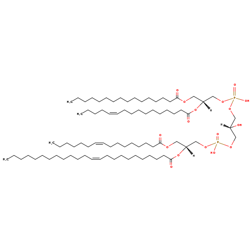 Matched Description: … 'double' phospholipid because they have four fatty acid tails, instead of the usual two. CL(16:1(11Z ... (9Z-hexadecenoyl) at the C2 position, one chain of octadecanoic acid at the C3 position, one chain of ... acyl chains ranging in length from 12 to 18 carbons and possibly containing an unsaturation, or a …